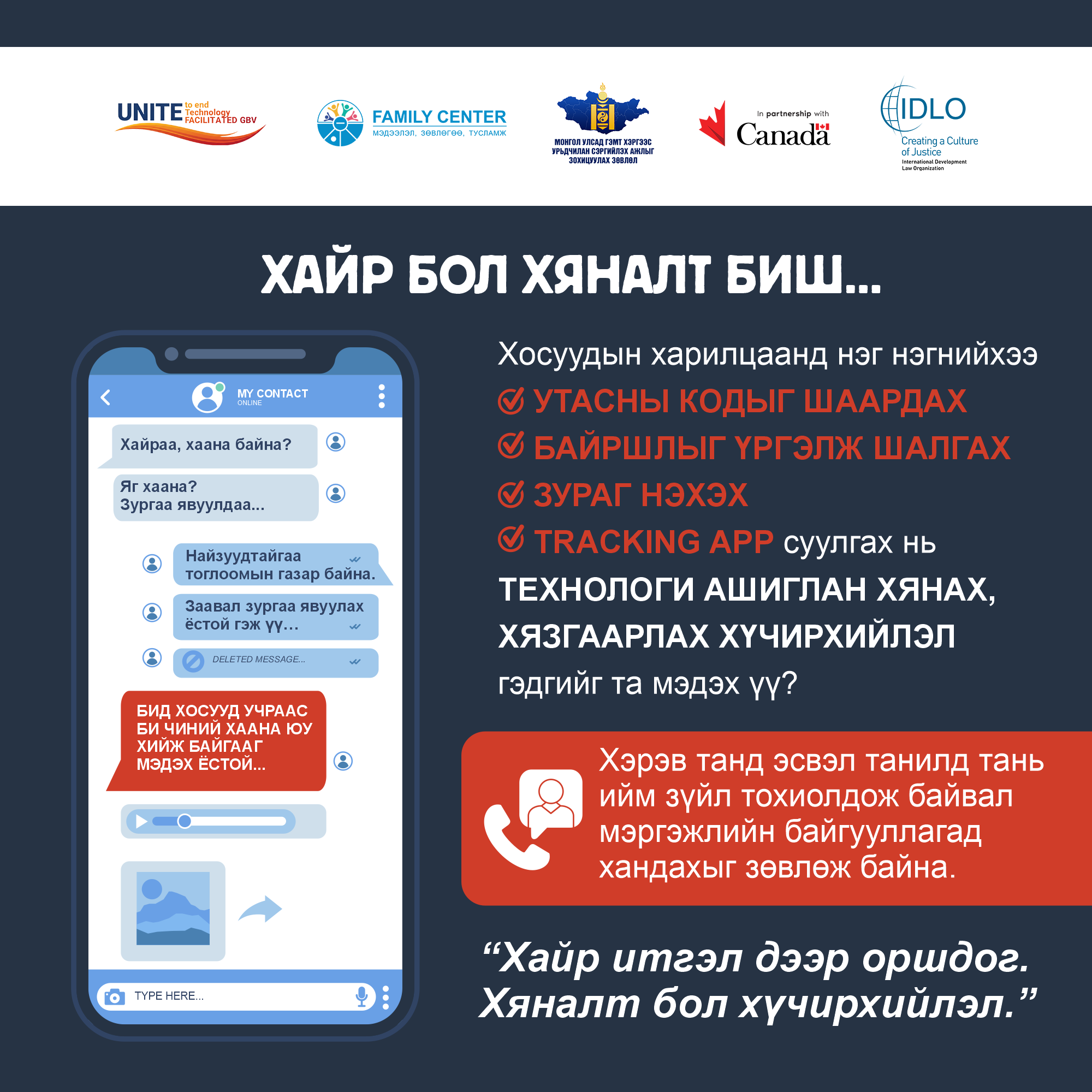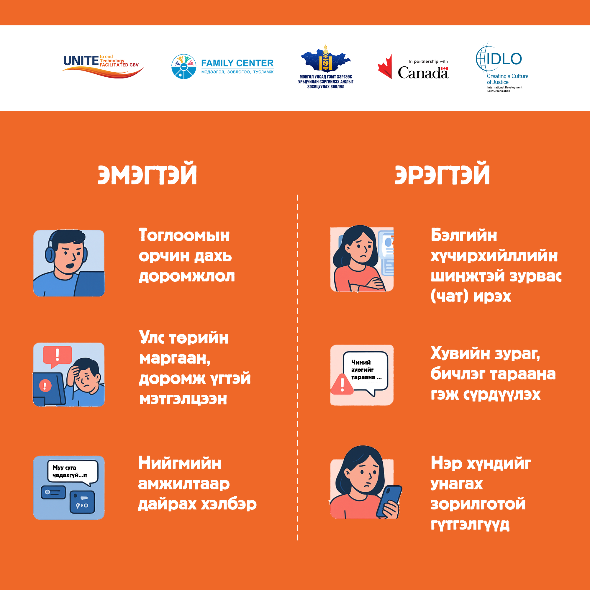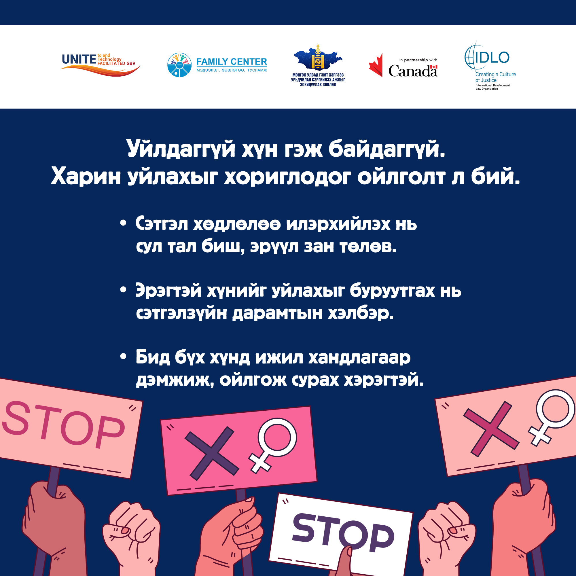 Жендэрт суурилсан хүчирхийлэлтэй тэмцэх 16 хоногийн аян үргэлжилж байна. Технологи ашиглан үйлдэгдэж буй жендэрт суурилсан хүчирхийлэл гэж юу болох талаарх мэдээллийг олон нийтэд өгөх, энэ төрлийн хүчирхийлэлд өртөхөөс урьдчилан сэргийлэхэд уг аяны зорилго оршдог.